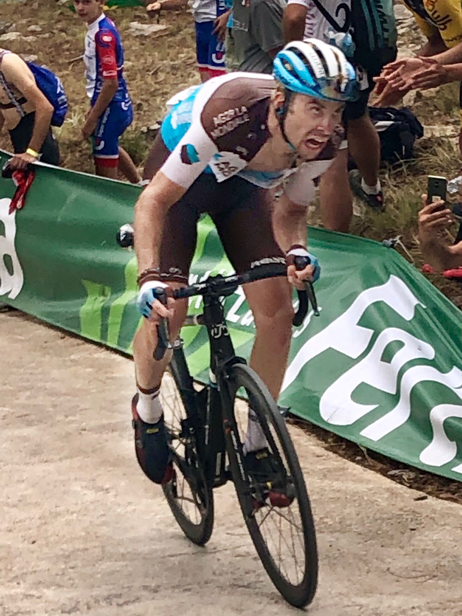 Excitement was mounting. Valverde, Lopez, Roglic and Quintana were fighting it out on the final climb and the Spanish were going nuts. Valverde rides for Movistar, a Spanish team. The Spanish celebrated , the Colombians not so much Although a Columbian is now wearing the Red Jersey!