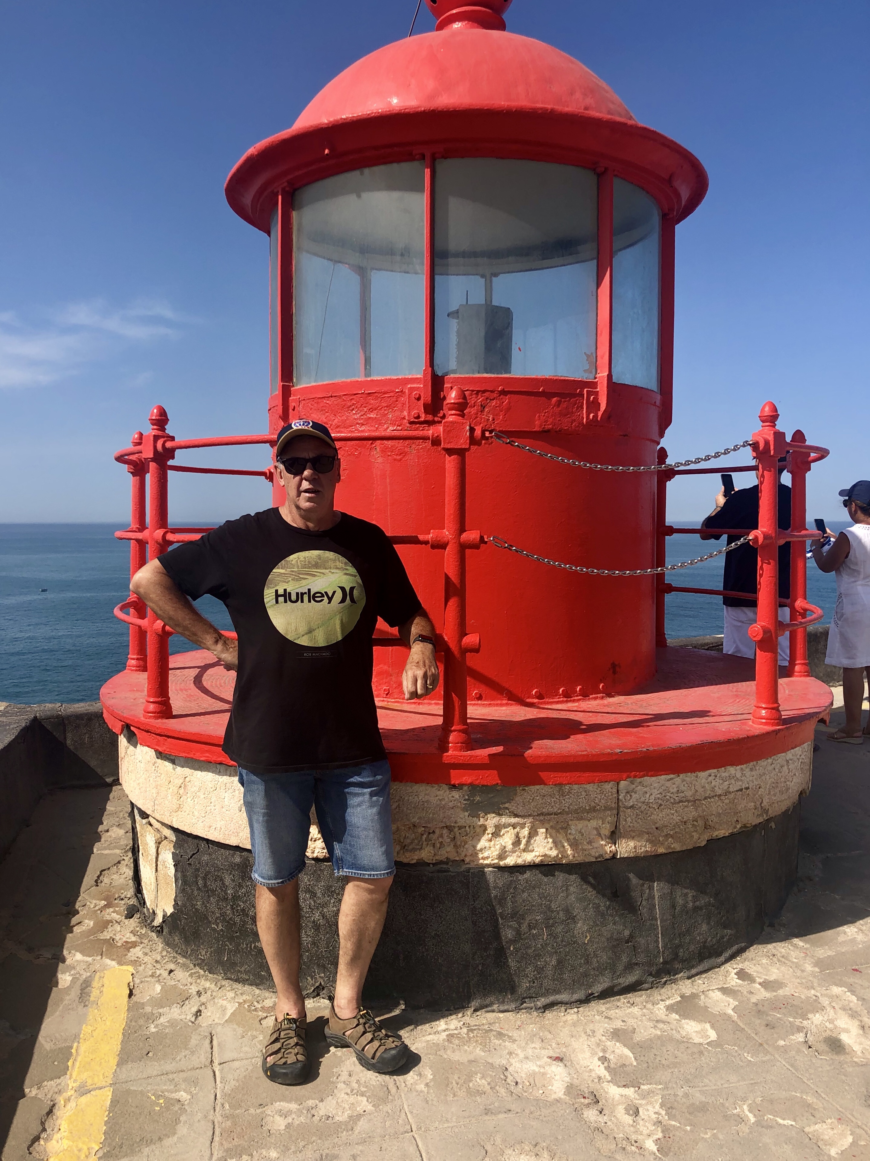 From here to the famous little lighthouse that stands defiantly in the face of the Worlds Biggest Waves, was a 10 minute walk down a steep hill. A steep hill, with no shade and certainly not much of a sea breeze!