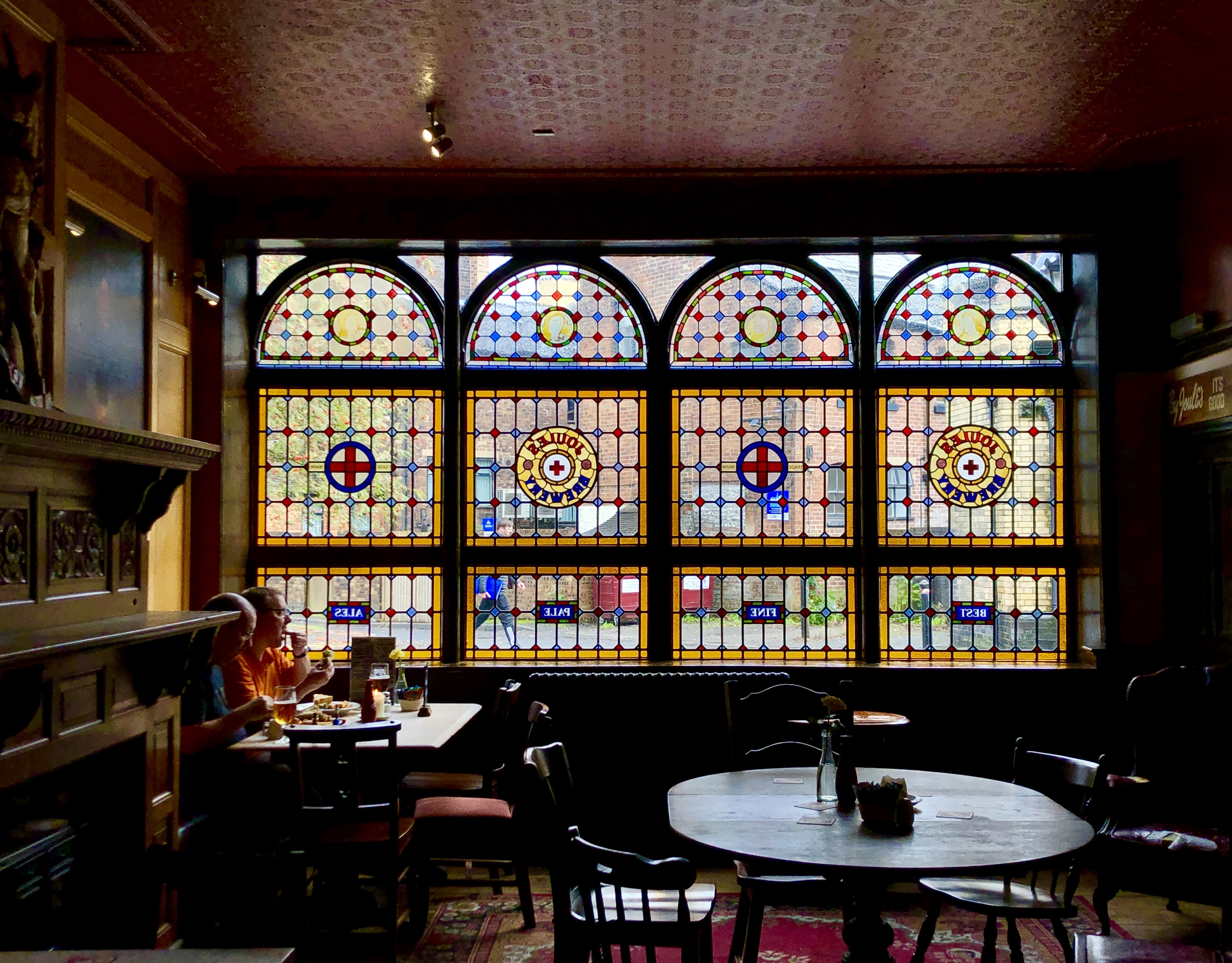 We arrived in Stoke-on-Trent hoping to deposit our bags somewhere and go exploring for the afternoon. But this proved impossible as the r*#n started to fall. We found ourselves recovering in a nearby pub. It even had stain glass windows!!! Happy days!!!
