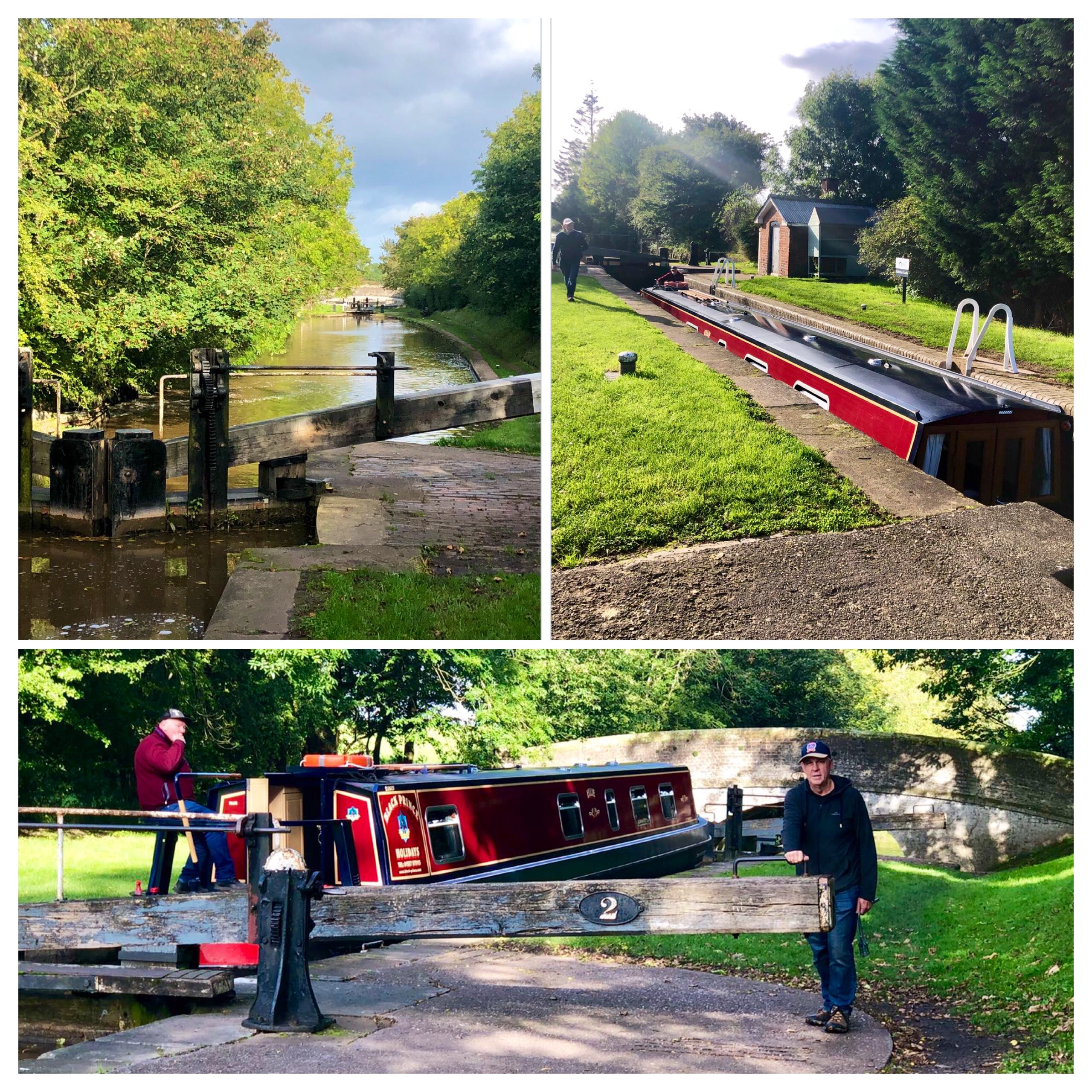 The Adderley Flight consisted of five locks dropping us 31 feet ( 9 1/2 metres). Long John Silver was at the helm and negotiated the locks in style.