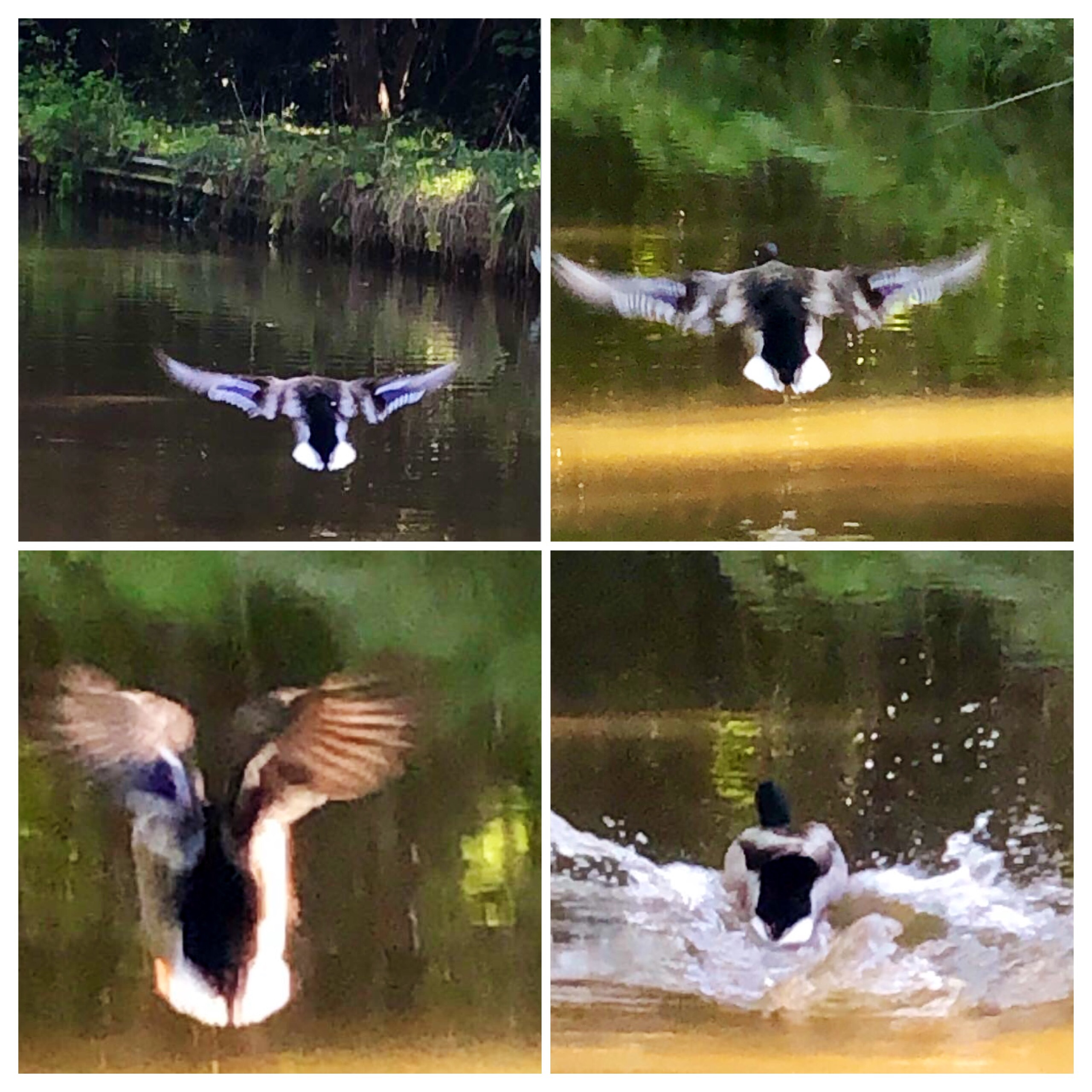 Grahame and I have been trying to photograph ducks taking off or landing on the canal for a few days now. I thought I had jagged it with this series of slightly blurred pics.