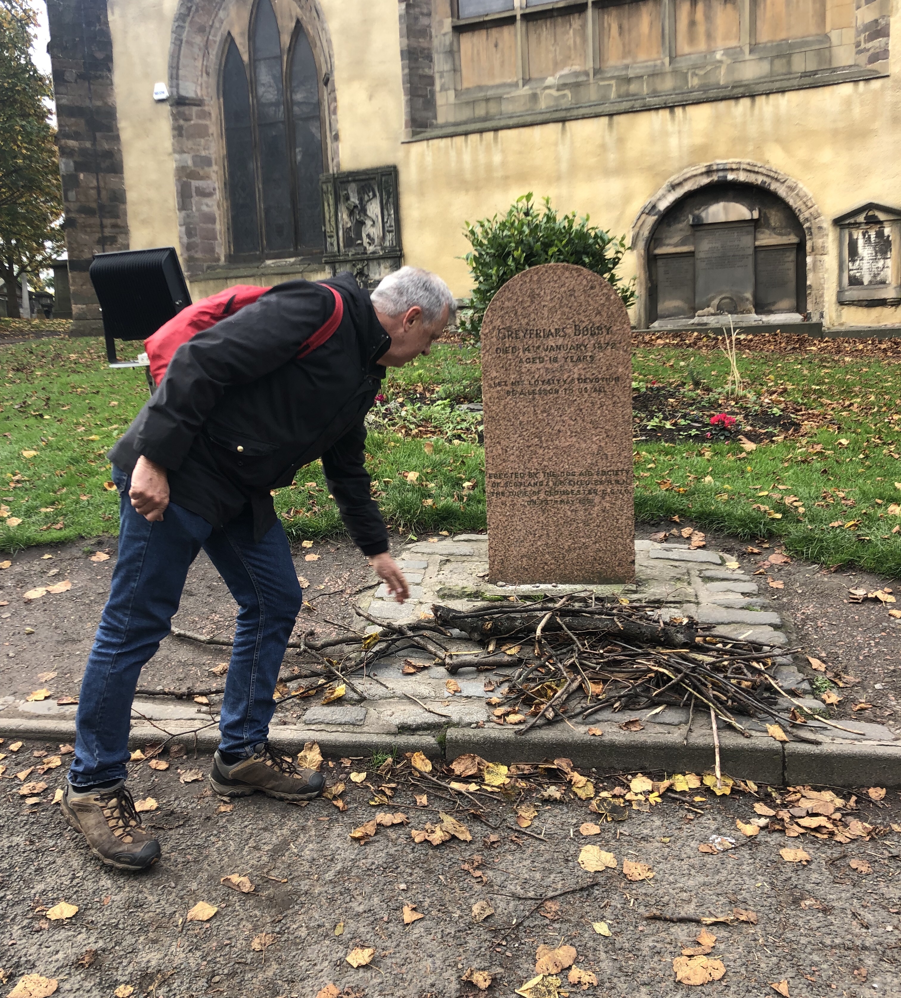 We visited Greyfriars Kirk and paid our respects to Greyfriars Bobby. Grahame left him a stick to play with in the after life!