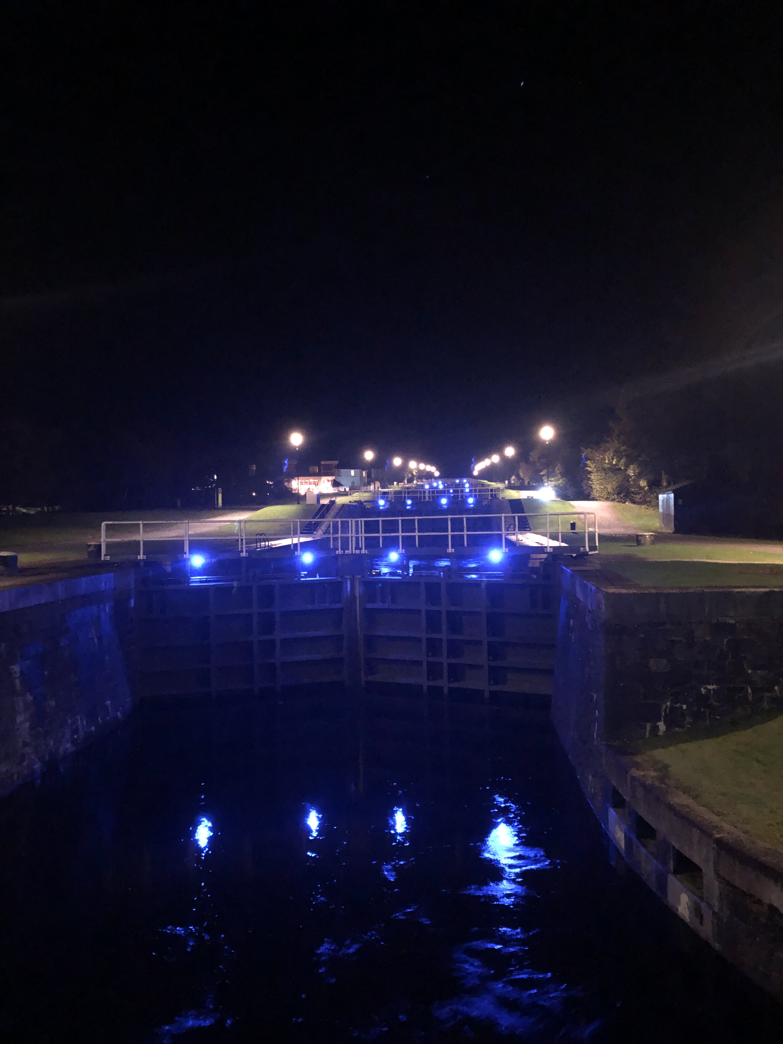 After meeting our hosts, we walked into town to find some dinner and realised we were within coo-ee of the Caledonian Canal running from Fort William to Inverness. Of course we had to check out Neptune’s Staircase, a series of 8 step locks. At the base are two swing bridges, one for cars , the other for trains. It hurts my brain to even try to work it out.