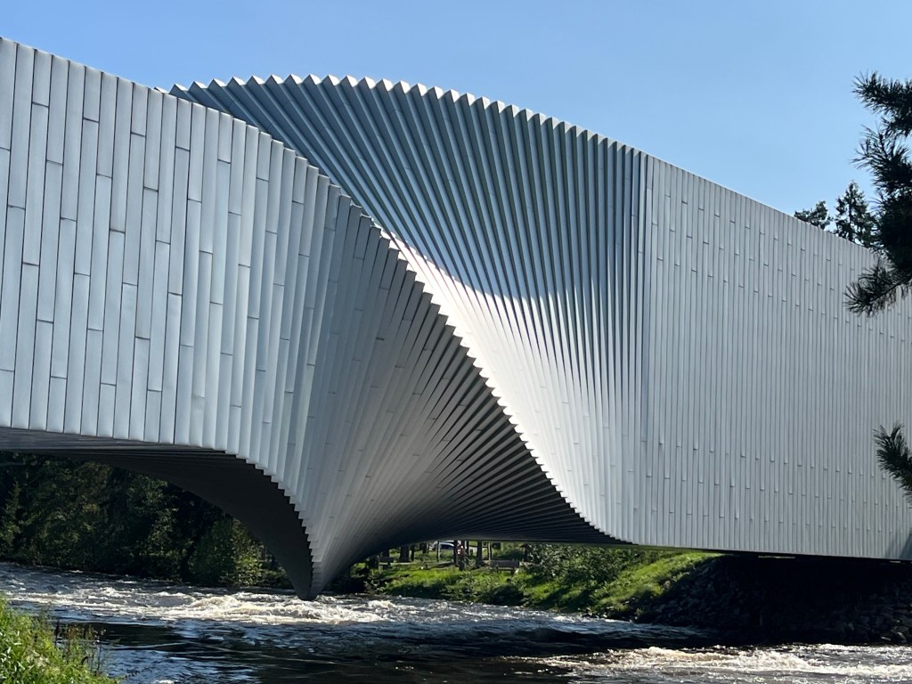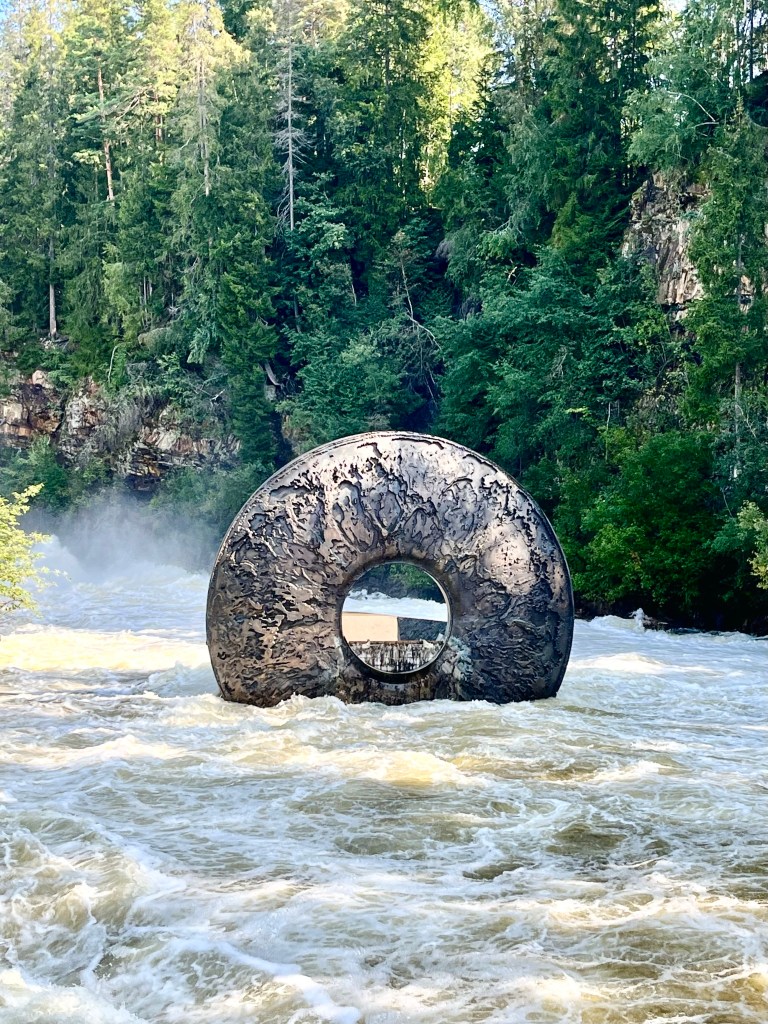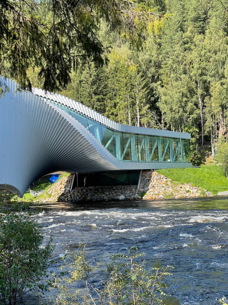 Our visit here was a happy little accident. I’d been watching “Grand Designs” a while back and some overachieving, underfunded and unrealistically time framed home builder/ renovator, mentioned that his inspiration had come from “The Twist”, a gallery spanning a river in Kistefos, Norway. I googled it ,and as luck would have it, it was on our way to tonight’s destination at Lillehammer