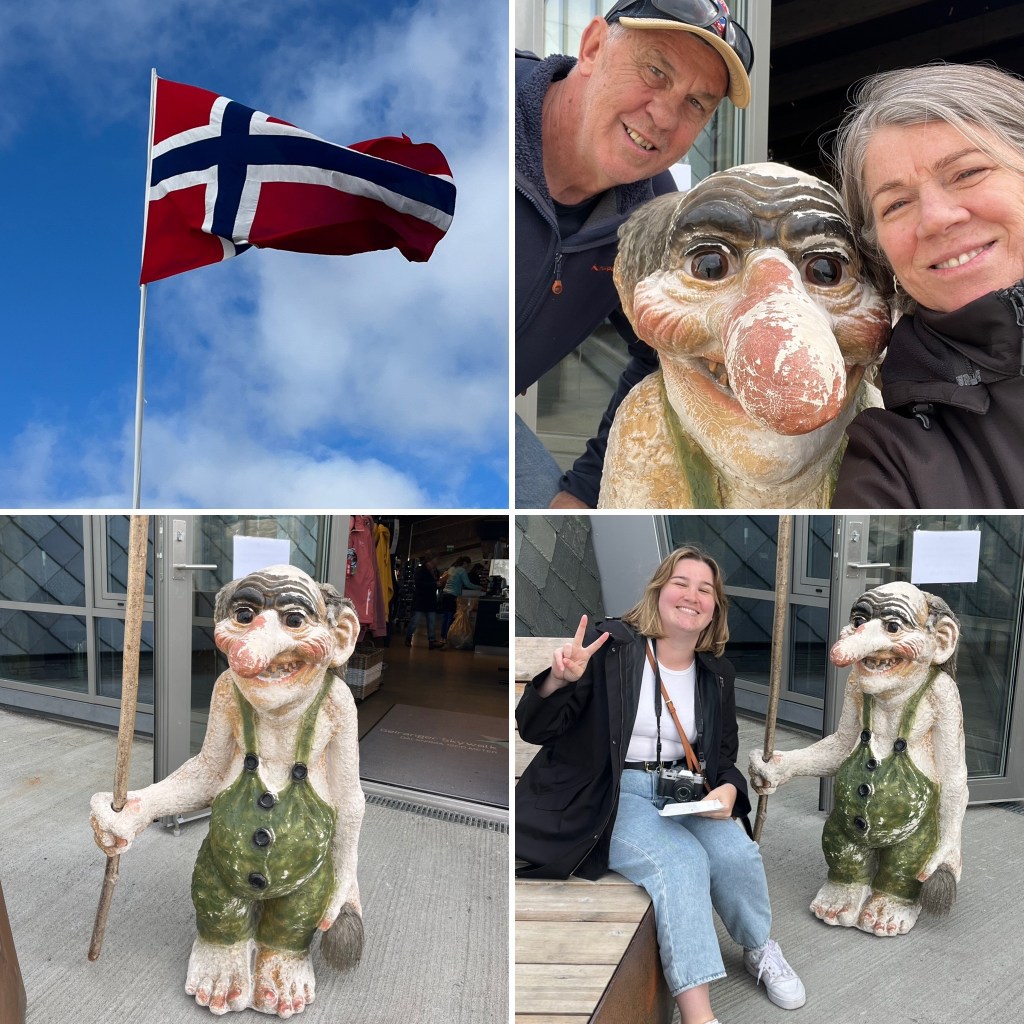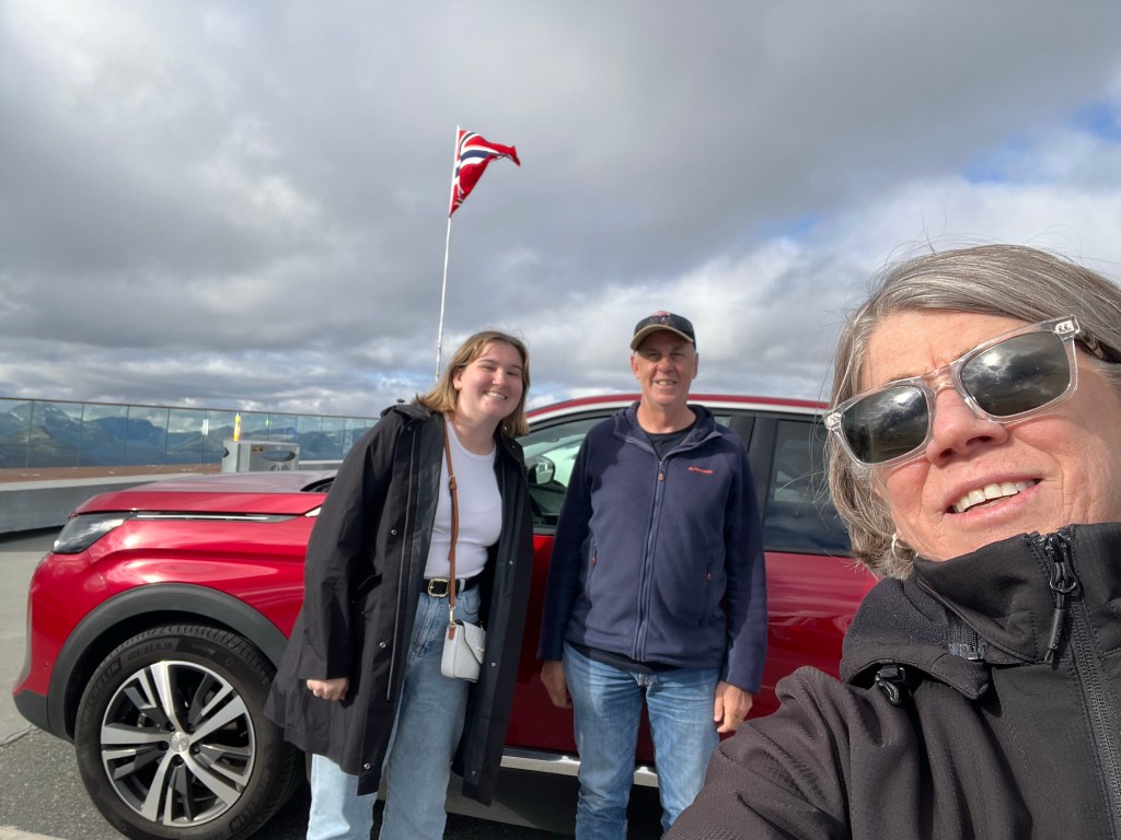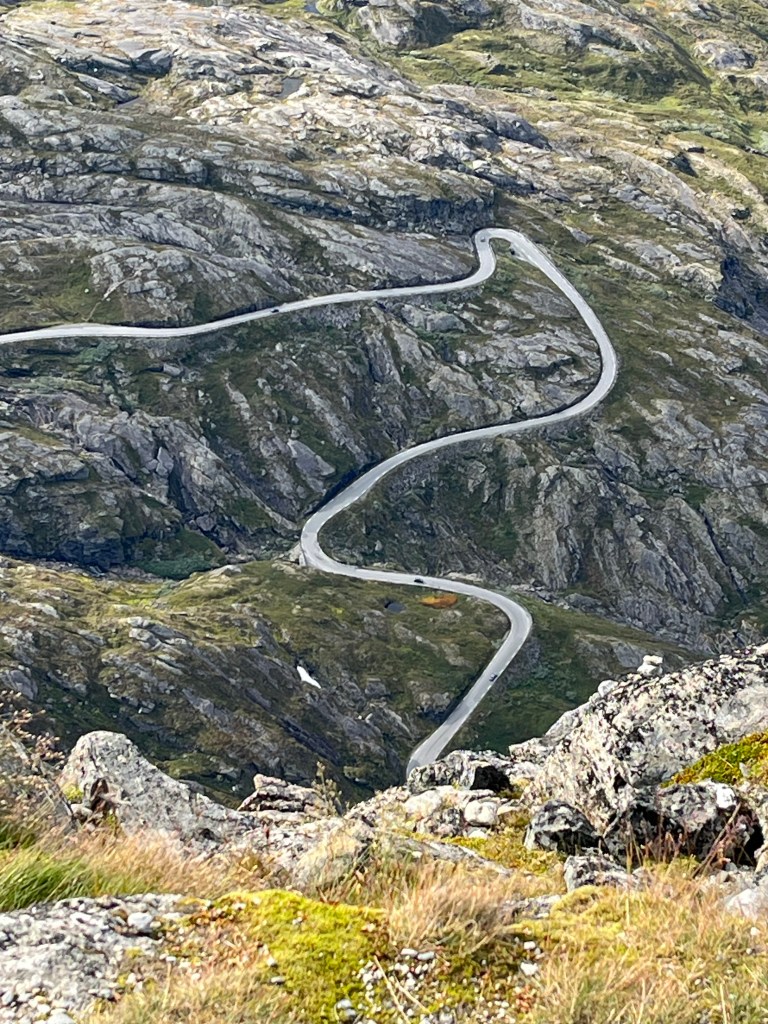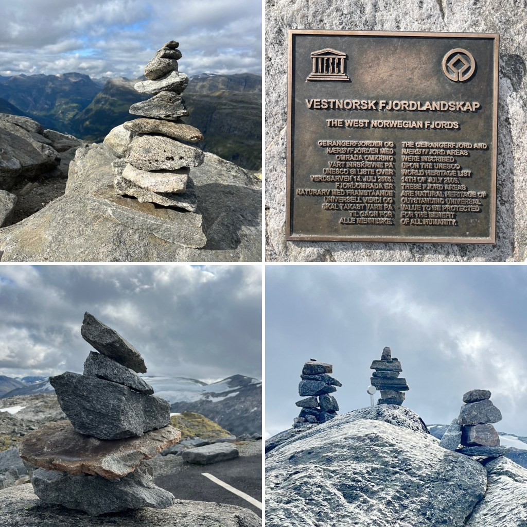 We paid an entry fee for the last five kilometres up to Dalsnibba. Not sure how much we paid because I still haven’t worked out the conversion rate, but wow, it was worth it!! The hair pin bends were hair raising and the busses, filled with tourists, hurtling down towards us were terrifying, But Grahame coped beautifully, manoeuvring our little Peugeot safely out of harms way.