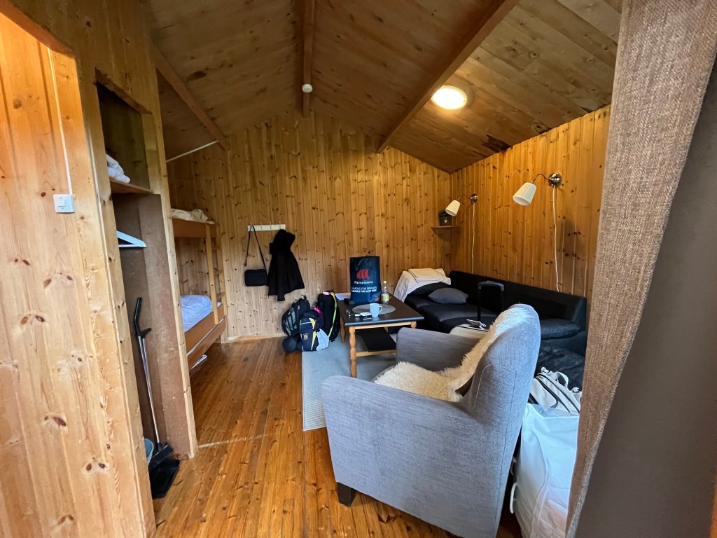 We checked in , paid extra for sheets, pillows and towels and held our collective breaths as we opened the door. Basic, but warm. Spartan but dry. Emily, being the youngest was allocated the top bunk bed, Grahame had the bottom bunk and I had the lounge!!