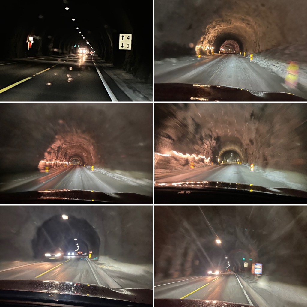 Our afternoon drive was one of contrasts. There were cruise ships moored in little villages, rocky outcrops (some with glaciers attached) and many kilometres of long, dark tunnels to negotiate.