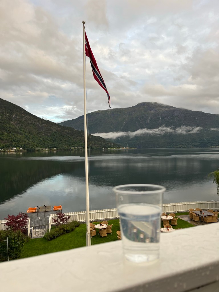 We were happy to arrive in Sogndal, our destination for today. We had found accommodation with enough beds for the three of us and it even had its own bathroom! The view was not bad either!