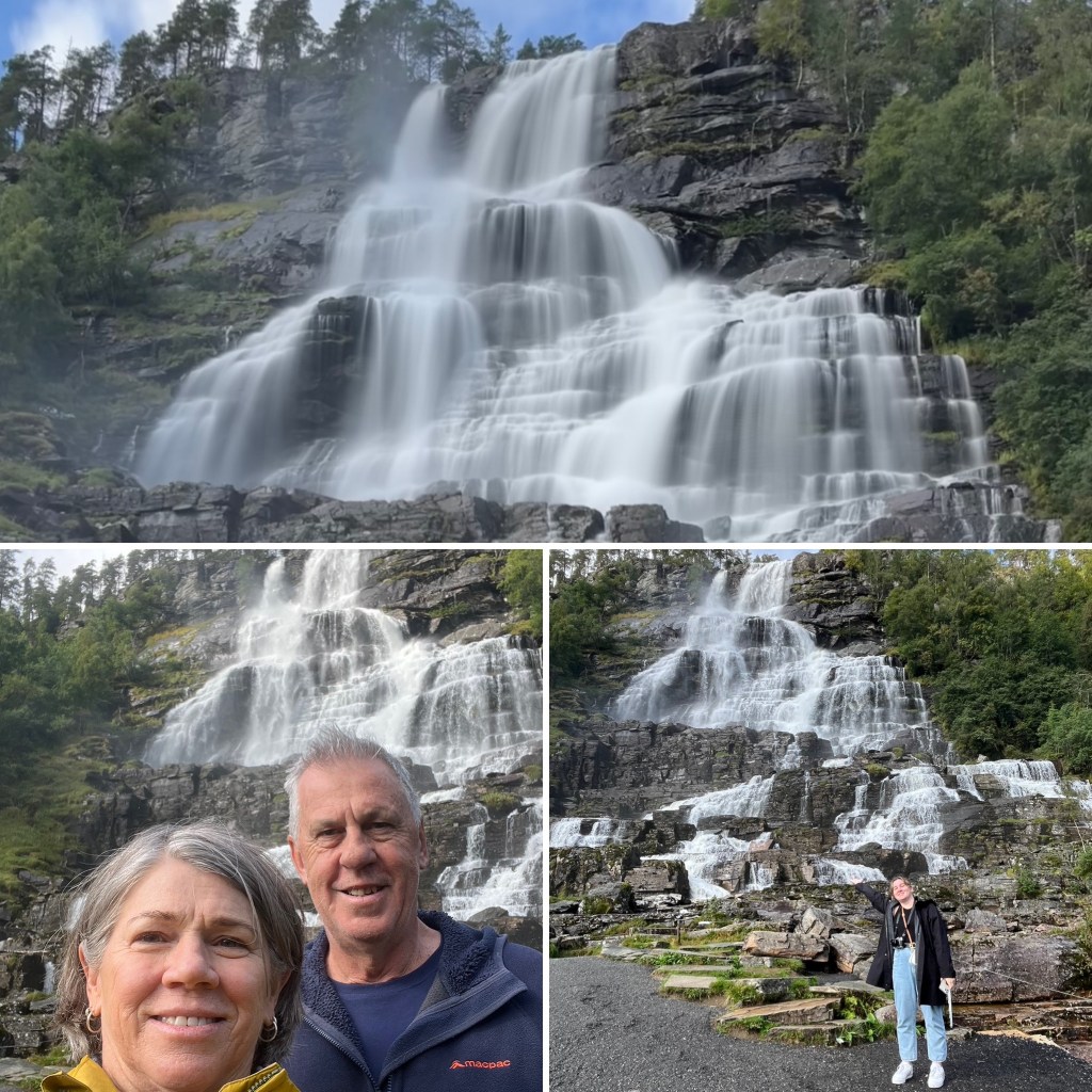 At one stage, we were driving alongside a fjord and I tried to count the waterfalls easily seen on the mountain opposite. I got to 15. Admittedly, some were fairly small, but they were still making that long plunge to the Valley below. Waterfalls are becoming a bit ho- hum (says she, tongue in cheek).