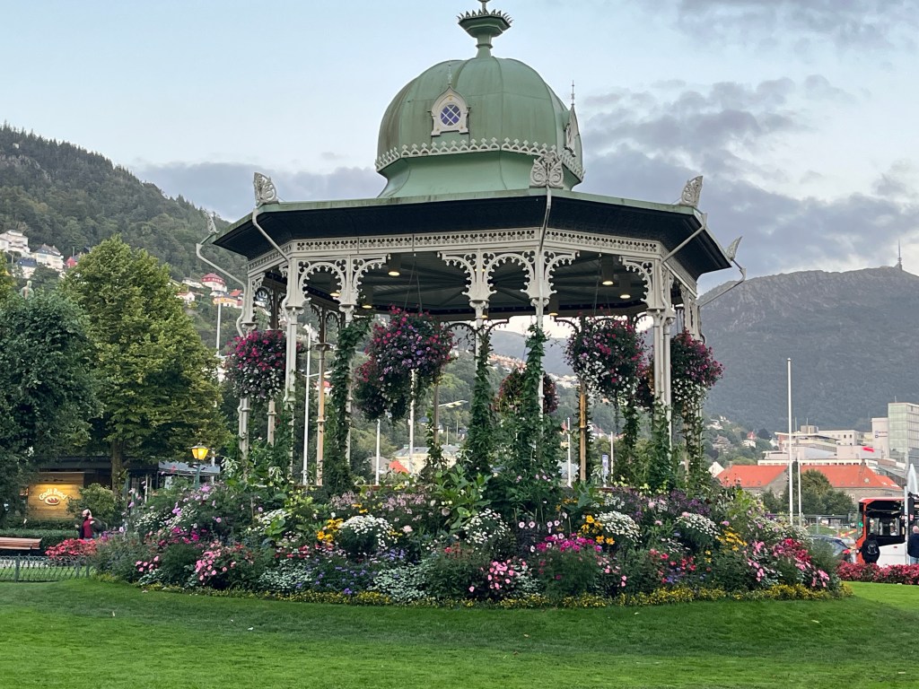 It was a colourful walk through the streets of Bergen to our lodgings.