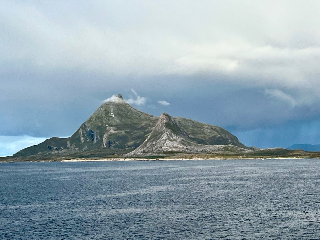 We crossed back over the Arctic Circle at 8.50 am. Of course, there was another ceremony on Deck 7 as we passed by the little globe monument with Hestmannen (the disobedient knight troll) in the distance. Now there’s a legend brewing here, but I’ll save it til later in the day.