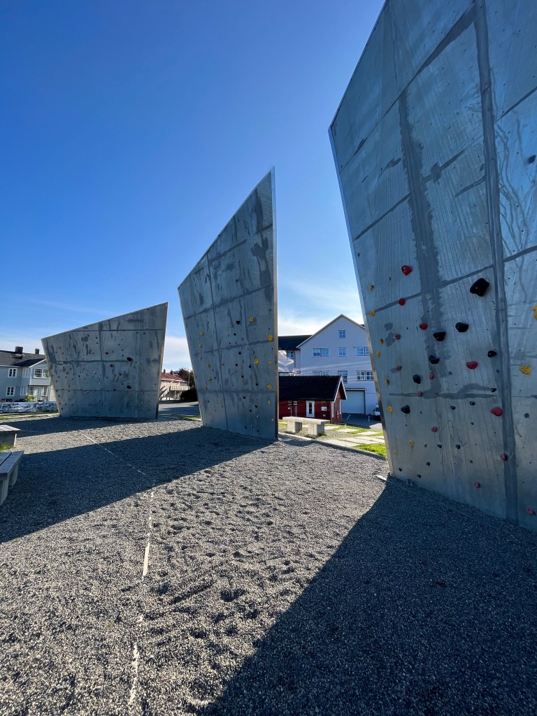 But don’t be deceived! On the other side were three climbing walls. Even more surprising was the lack of namby-panby “soft fall” stuff you would expect to find in our parks at home. No, any adventure loving Norwegian kid who wanted to have some fun here, would experience the joy of falling several metres on to pointy sharp bits of rock and gravel! They’d soon learn to hang on tight.