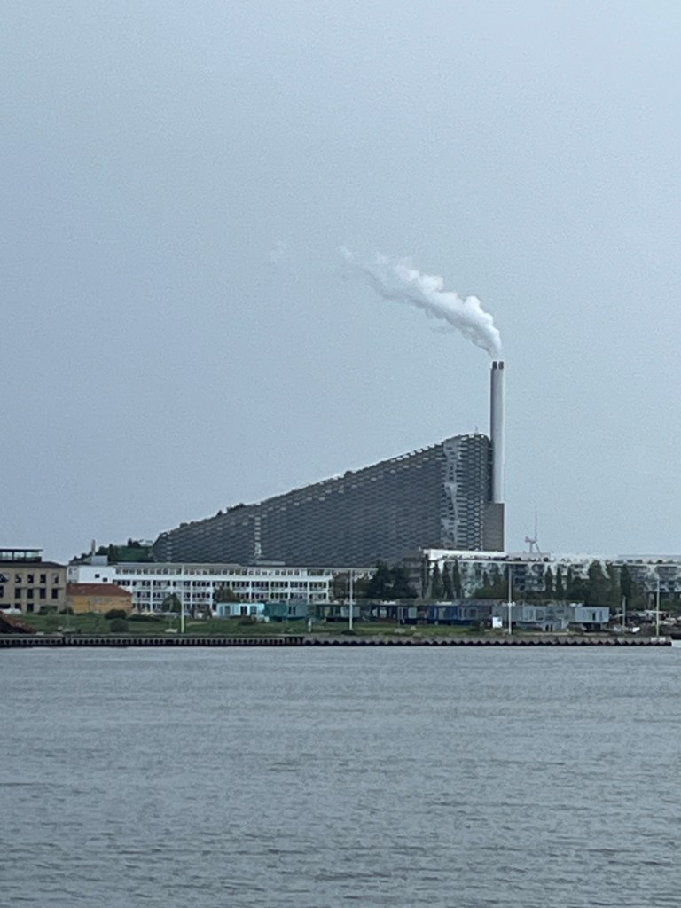 The building in the background is interesting and I wouldn’t mind trying to visit it tomorrow if we have time. Amager Bakke is is a combined heat and power waste-to-energy plant (Incinerator!) and recreational facility that opened in 2017. Not only does it burn rubbish to create energy, you can go skiing, wall climbing and hiking ON It!!