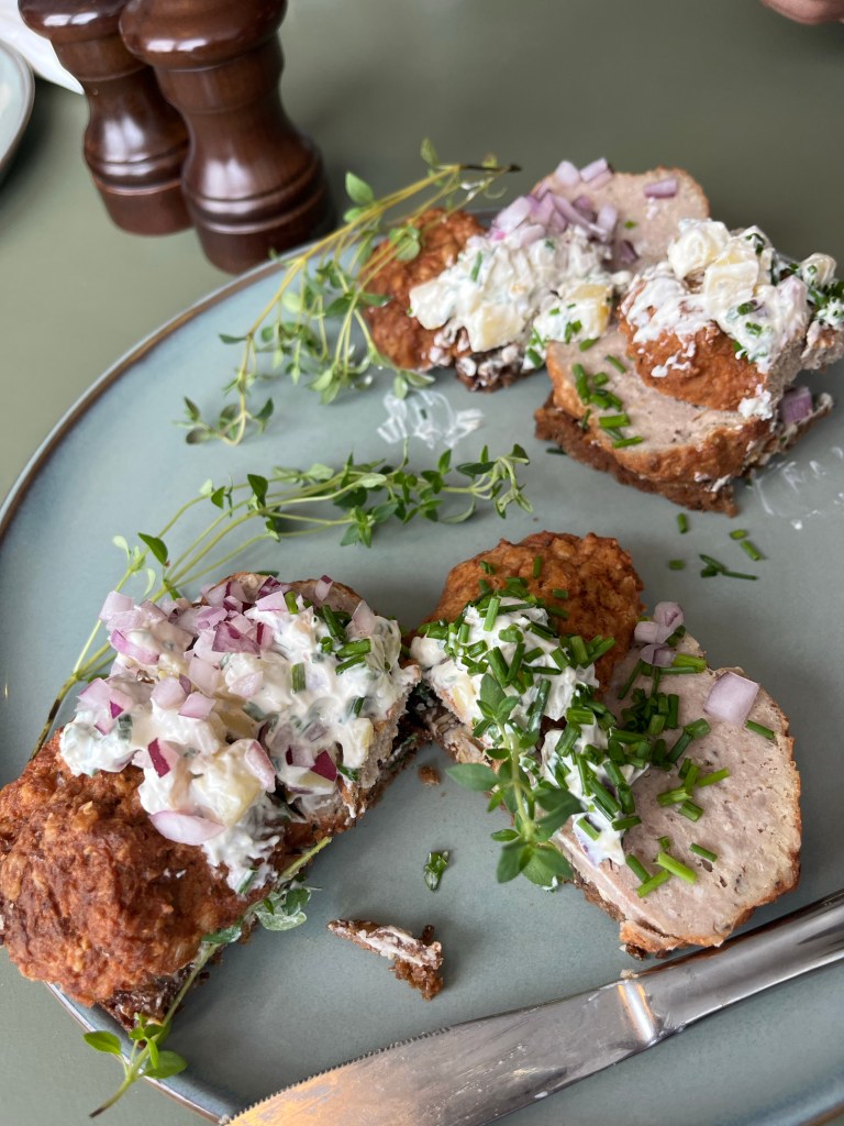 To escape a sudden shower of r#*n, the four of us ran for cover, and lunch, in a huge department store, “Magazin du Nord”. It was huge! We all had Smørrebrød, or Danish open sandwiches with…. (You guessed it!!!) meatballs! Danish ones.