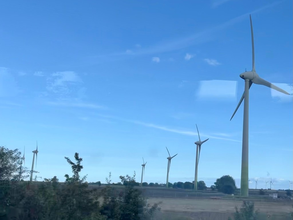 The German country side whizzed past. Green rolling hills, red brick farms and hamlets, distant church spires and hundreds of wind turbines splattered across the country side.
