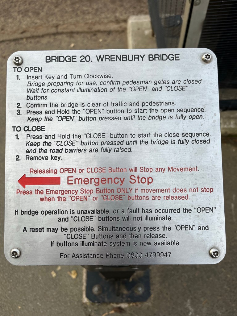 Key inserted, buttons pressed, traffic gates released, bridge lifting and that’s when all the cars turned up. I avoided eye contact with the drivers and kept my finger on the button.