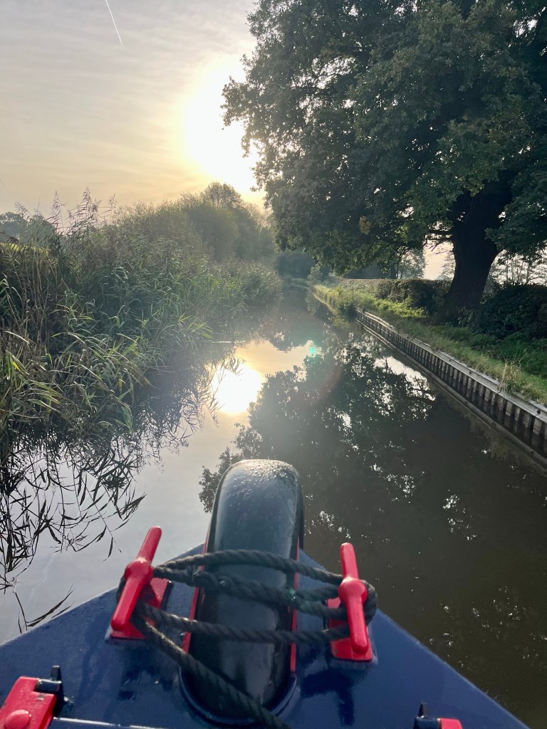 There have been forecasts of not such great weather approaching over the next few days and as a precursor, the wind had picked up. In the narrow sheltered stretches of canal this was not a problem, but in the more open spots, poor old Ellie acted as a wind sock and got shoved around a bit. John and Jude were on tiller duty and had the job of keeping her on the straight and narrow.