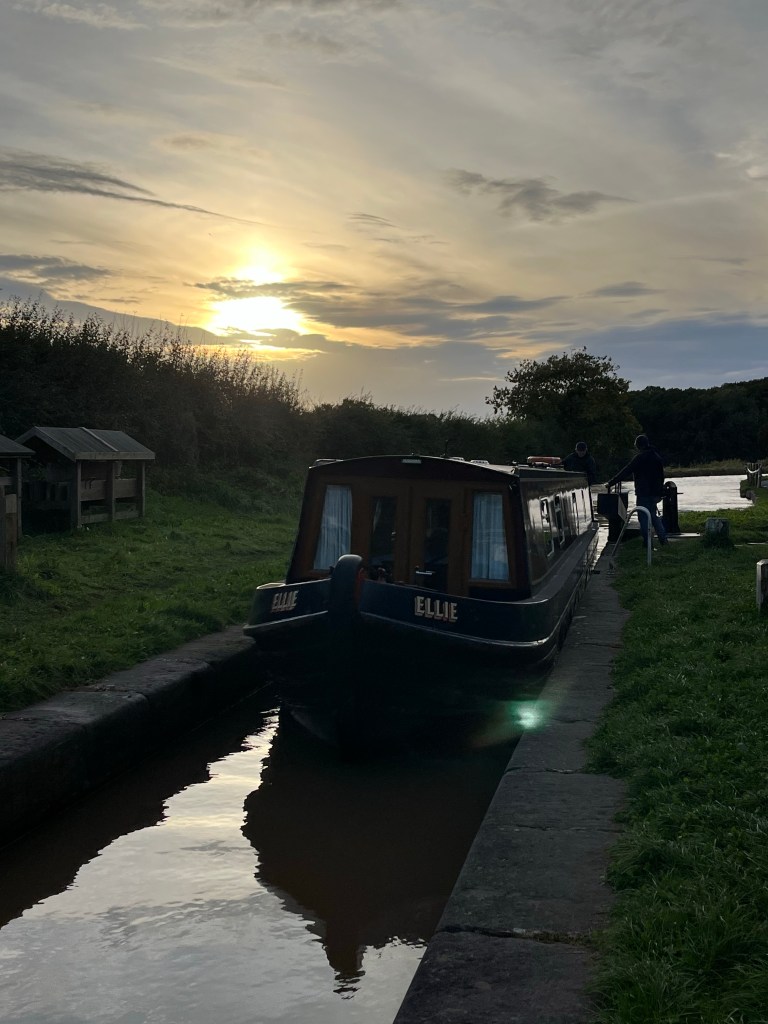 As the sun set, we negotiated our last lock of the day, joined by a family of swans looking for some shelter (or food!!).