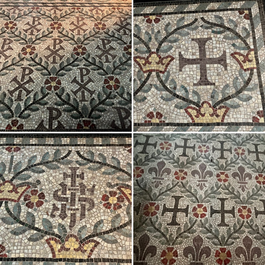 Inside the church was an interesting combination of beauty and mess. It had a beautiful tiled mosaic floor and a whole pile of junk not very carefully stowed away.