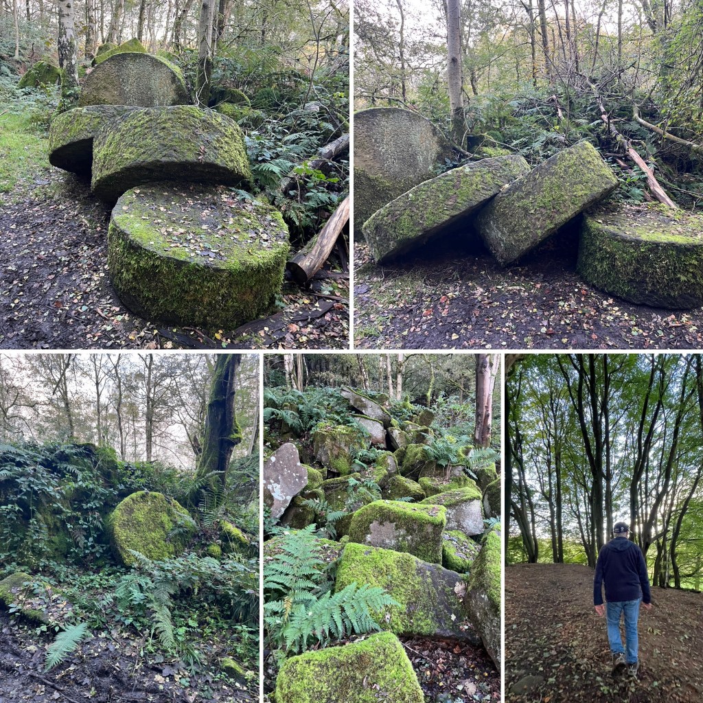 Unbeknown to us, it really was a hike! We took about 45 minutes (3.7 kms) through muddy tracks, past old derelict limestone mills, through piles of discarded mine rock and many millstones scattered in the woods.