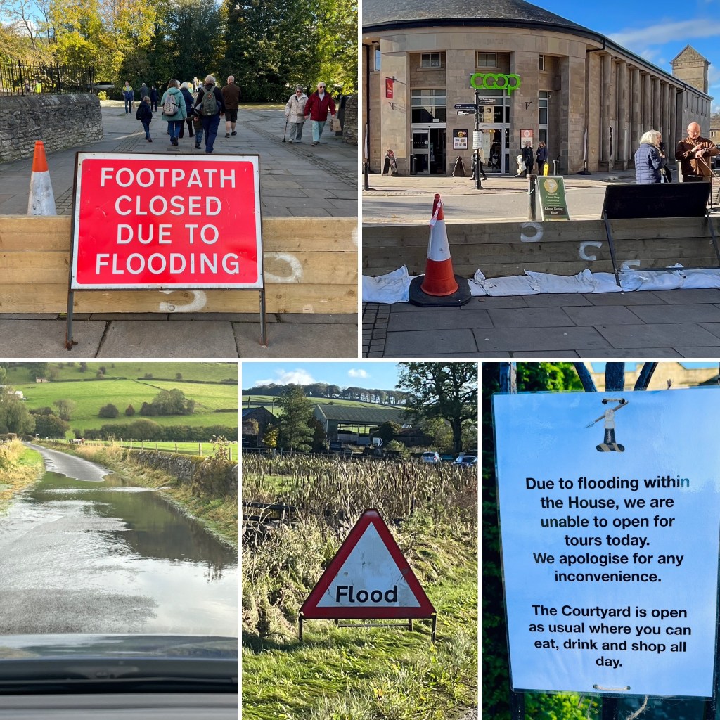 The evidence of the flooding deluge a few days ago has been very evident. Sandbags against cottage front doors, Flood warning signs, road closed signs and water barricades have been sighted regularly and Bakewell had its fair share.