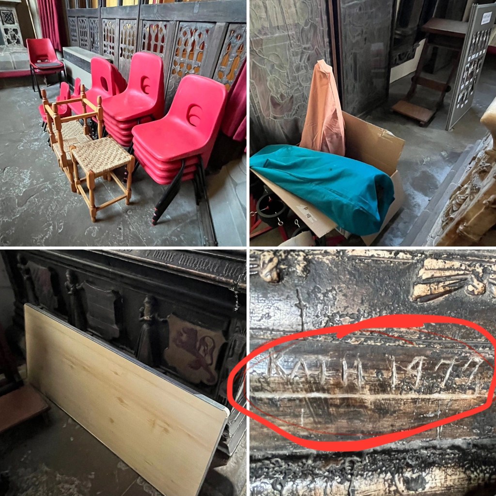 It’s other notable object in the churchyard is the tomb of the Rev. Mompesson’s wife, Catherine, who died from the plague and is the only plague victim to be buried in the church yard. It was one of the Revs “rules” that all those who died from plague had to be buried elsewhere (fields, paddocks, back yards etc.) to avoid contamination. I’m not sure why she was allowed in the church yard.