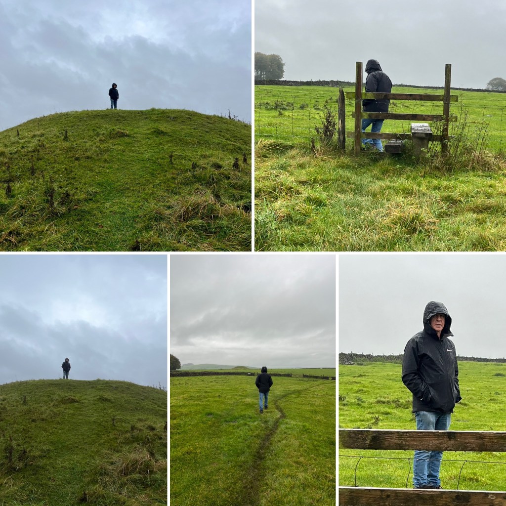 Poor Grahame is not a lover of cold, wet weather, nor of traipsing through sheep poo infested paddocks to see a pile of rocks and a little hill, but I loved it.!