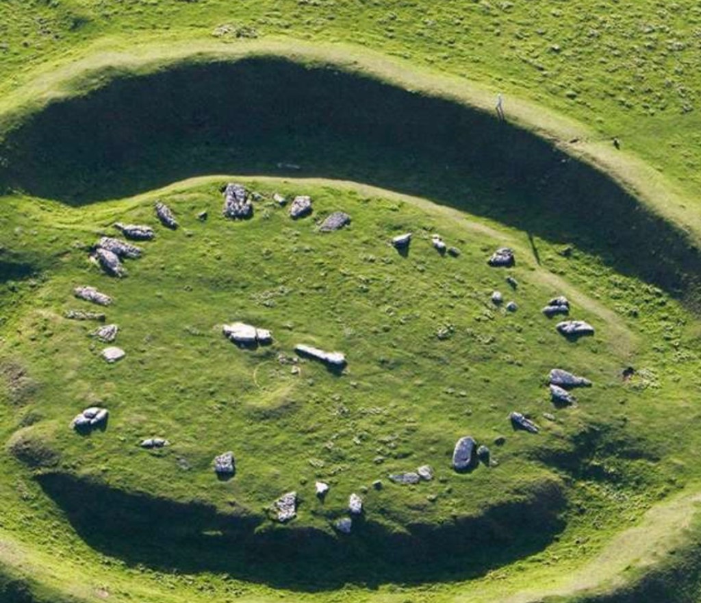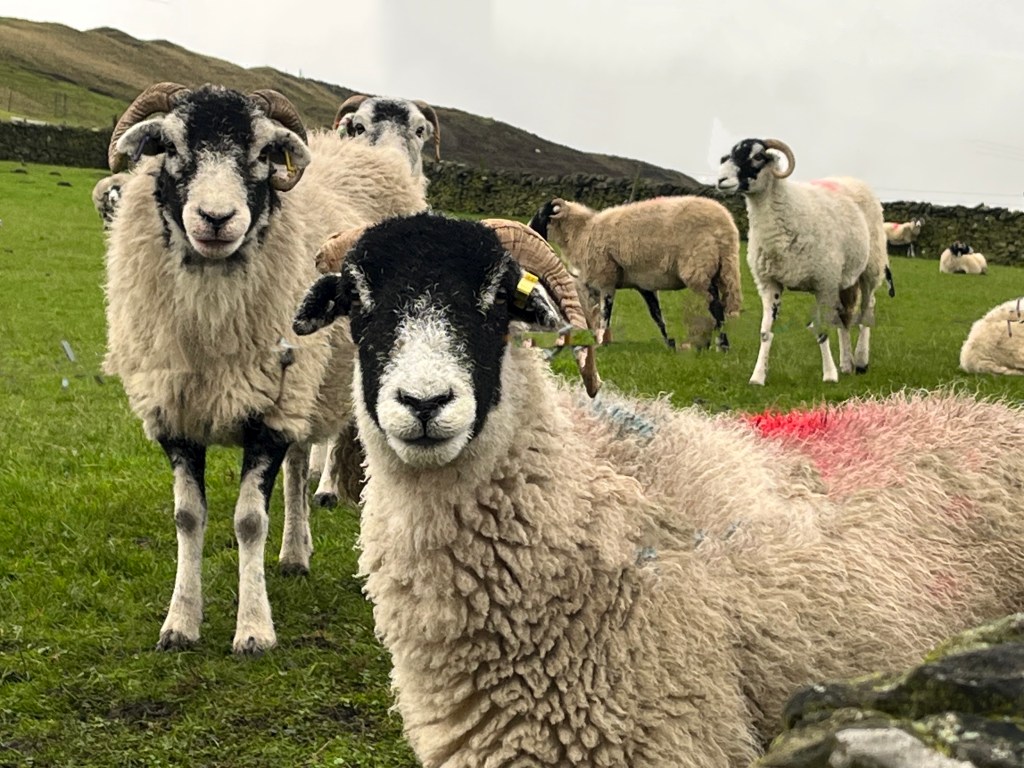 Arbor Low Stone Circle was built about 4,500 years ago and consisted of 40 upright slabs of limestone, all now fallen. The sheep have since moved in and they loved showing us this ancient monument.