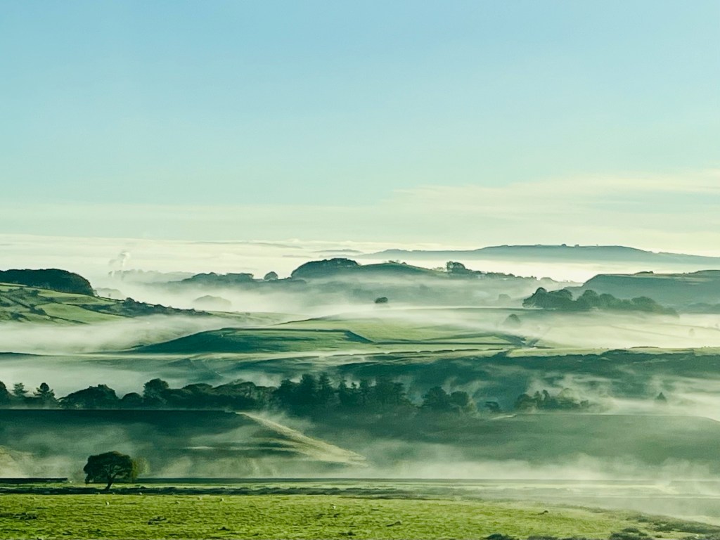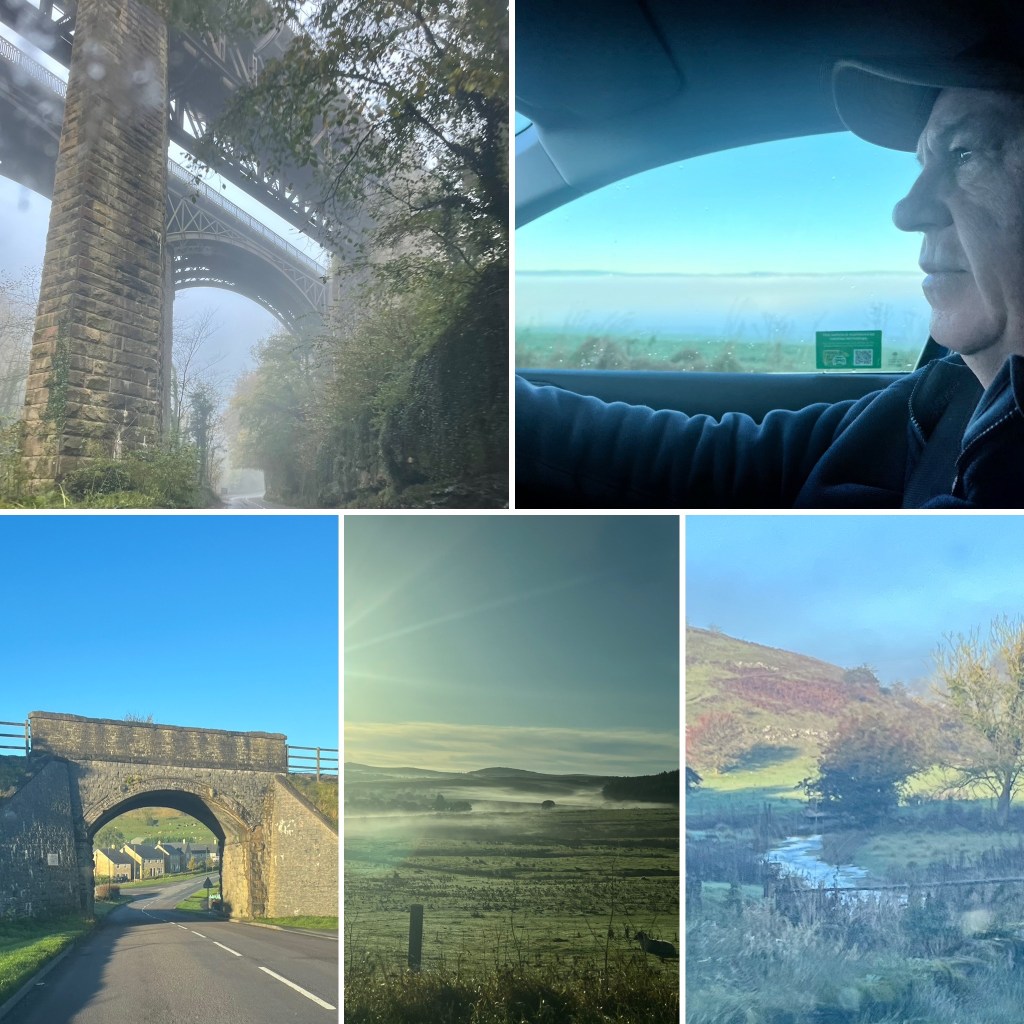 We left our lovely little Litton Airbnb in a thick fog. It was tricky driving on those narrow country lanes with rock fences close on either side, and definitely a tight squeeze if we met a car coming the other way, but Grahame coped brilliantly, and the occasional glimpse of countryside above the fog level made for stunning views on a very cold but sunny morning. (5 degrees at 9:30 am).