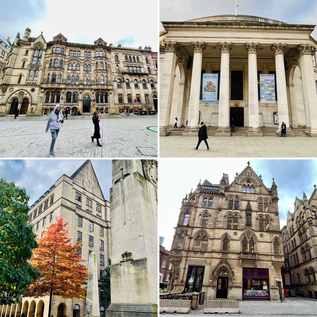 We passed through Piccadilly Gardens which was bustling with people, light rail, workers setting up for the Christmas Markets and various street food vans.