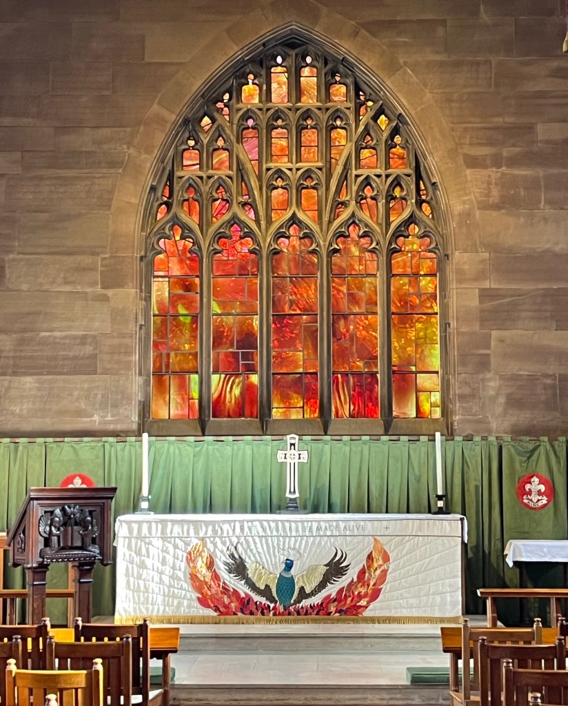 It was such a contrast to the dark, dimly lit churches we had been in recently. The sun was lighting the stain glass and the whole building was filled with light. It was quite beautiful!